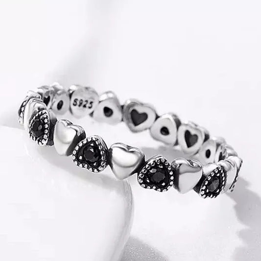 Anillo Corazones Circon Negro