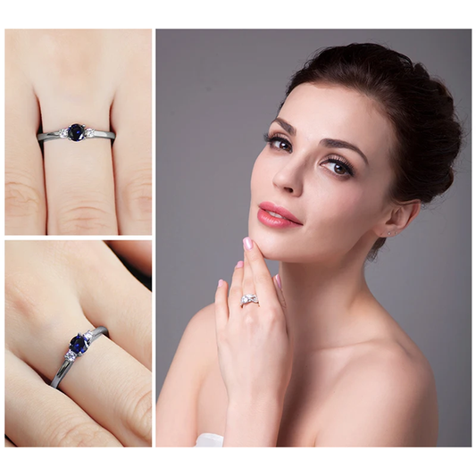 Anillo Compromiso Zafiro Azul En Plata 925